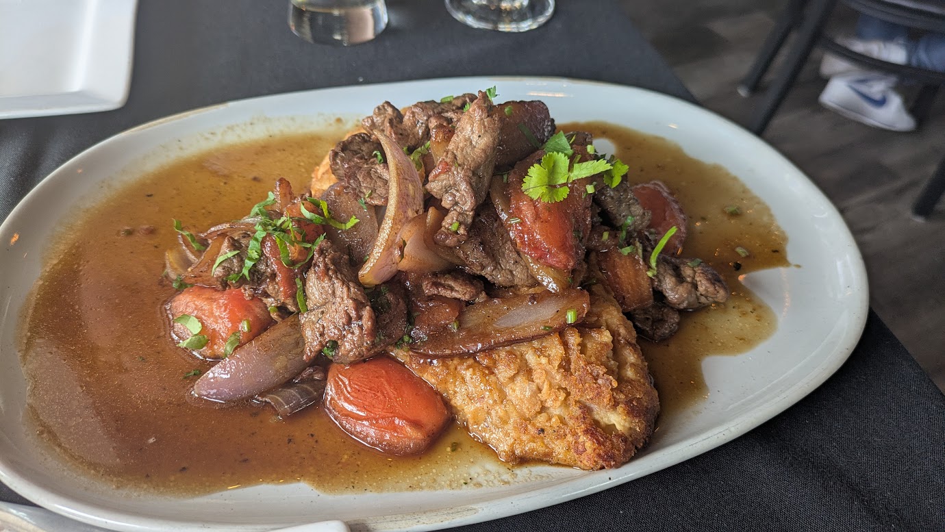 Hmm, I can't really find the main event dish we had. It was beef and veggies sautéed up and served over rice. It was really lovely. Something about the Peruvian spice blend makes it taste like chili powder, but with no spice. Beef was tender, the veggies were plentiful, and that was some of the best rice I've ever had. Really great dish.