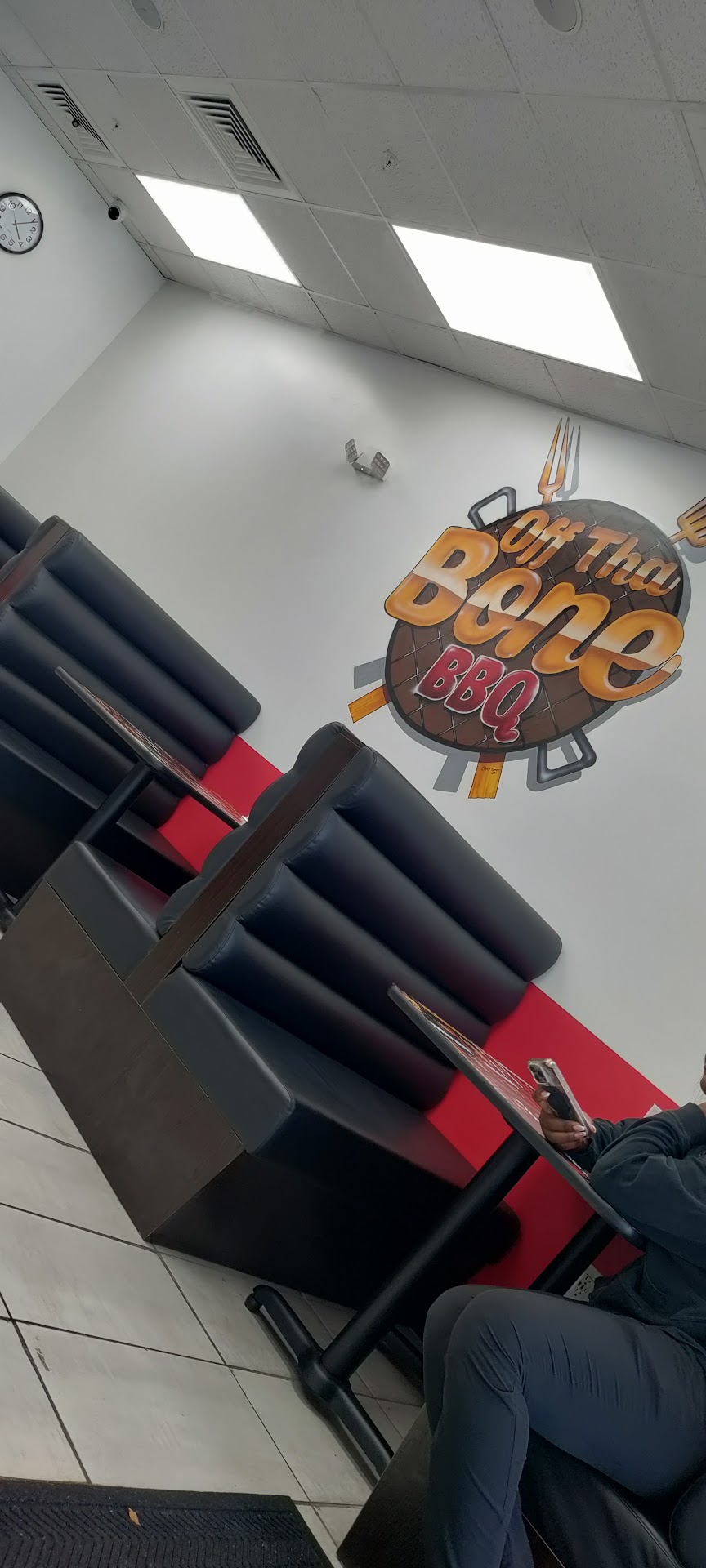 Ā Ā Ā Read moreFour of us went for dinner on a Saturday evening. It's an order at the counter place. The space was very clean and comfortable. No frills atmosphere, but at a great BBQ place that is fine with me. The women at the counter were very nice, hospitable, and welcoming. Three of us had the rib dinner and one person had the tips. We weren't sure what "tips" were, so the owner brought a slab of ribs out and showed us exactly what they were. The food was out within ten minutes and everything was hot and fresh. The portions were large and the ribs and tips were absolutely delicious. They did fall Off the Bone. Our sides included greens, beans, French fries and potato salad. The greens and beans were particularly good. The potato salad was a bit salty and that is the only thing that we could possibly say did not hit the mark, but that is obviously personal preference. Cornbread was included. Prices were very reasonable for the quantity and quality of food. We will be returning and Off Tha Bone will become a favorite take out for us. Thank you to the owner and staff for the 5-star food...