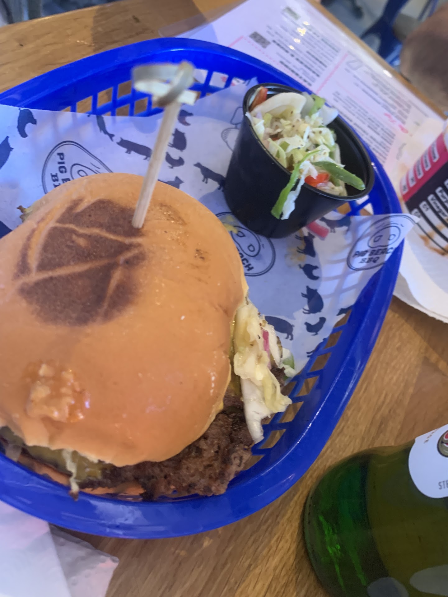 PIG BEACH BURGER (Single): Tasted closer to a Dave's Single from Wendy's then a BBQ restaurants signature burger. But the patty did melt in your mouth.