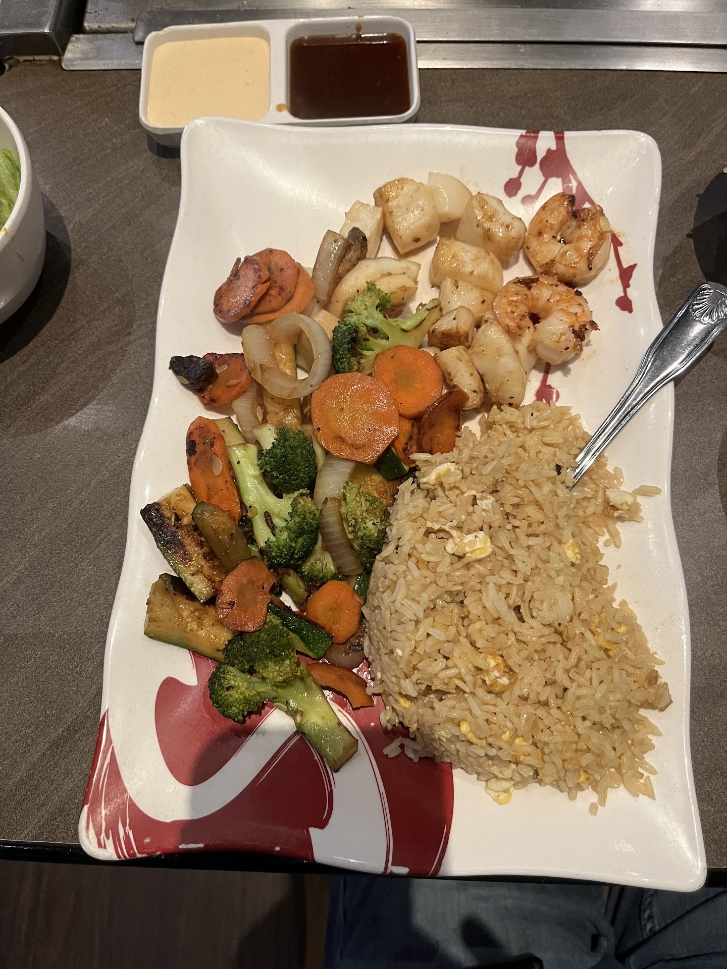 I could be biased and assume that hibachi chicken is just supposed to have some kind of teriyaki substance on it after going to over 20+ hibachi settings or could just be me. The chicken and steak (a New York strip ā that shouldāve been just called a Rhode Island Strip ā¦given its size) were cooked hibachi style with just oil, butter and soy sauce (that was watered down) with a drip of lemon. Overall, everything ordered seemed to be strictly portioned (I can almost say even weighed to the gram before touching the table) . The quality was just to being editable vs hibachi experience qualifying.