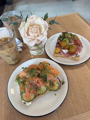 The coffee - perfectly crafted. Dark roast, highly caffeinated. The toast - ricotta, tomato, and proscuitto specifically - thoughtfully designed. Olive oil with a finish of salt and thyme - again, not an ordinary cafe.