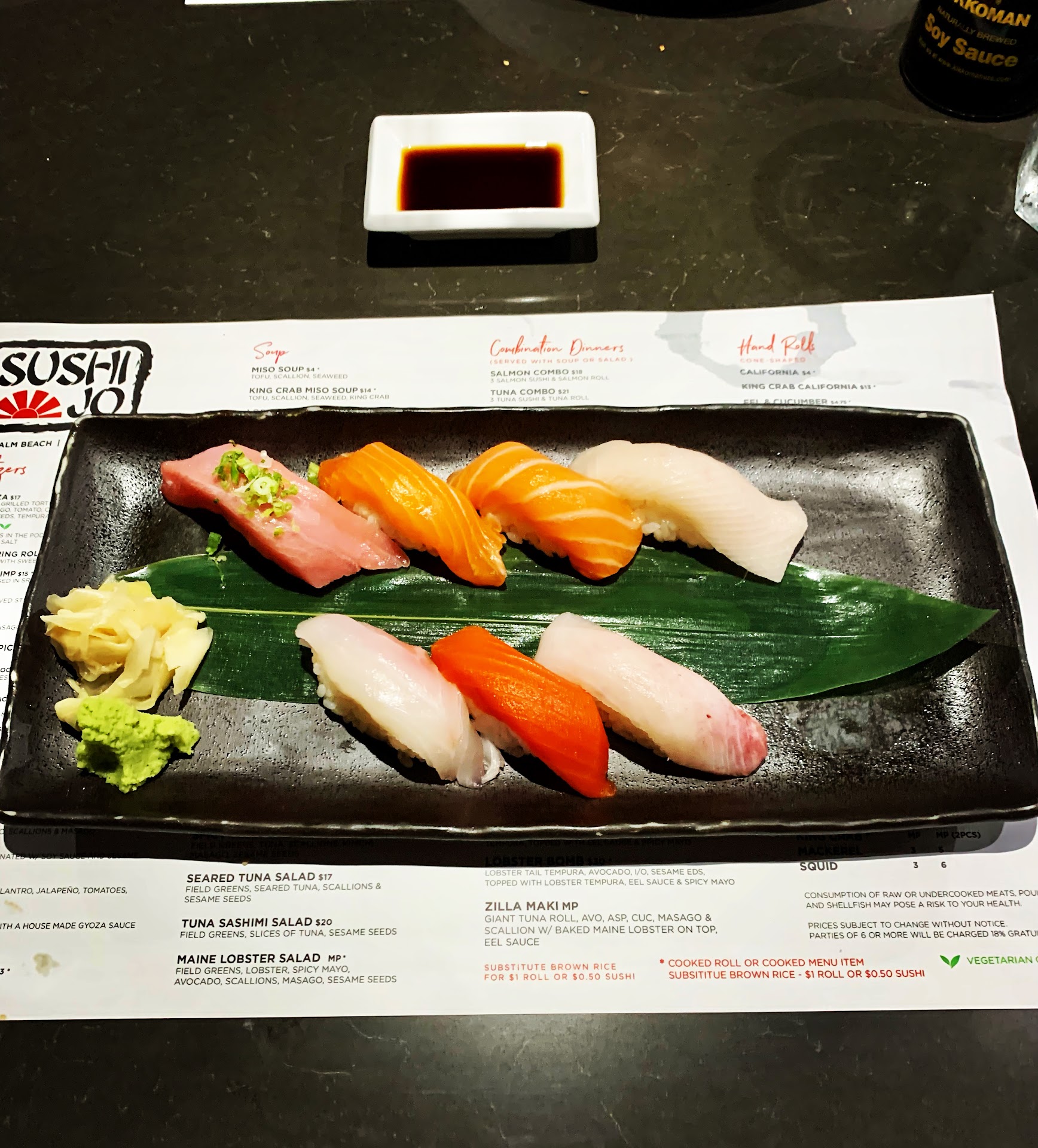 Well, I'll start off by saying.. I'm not really sure what to think of Sushi Jo. I've been a loyal customer, literally going 1-3 times a month, always going with my boyfriend.. never spend less than $150.. 1. I will say I have been to MANY sushi restaurants, and sushi jo is not cheap, somethings are definetly overpriced. 2. I will say that the setup of the restaurant.. including the on PGA, is terrible. unless you like listening to everyones conversations. me and my boyfriend go sit in the smallest table in the corner just so we can be a couple feet away from everyone, which isn't much! it's just very open seating, not very personal. 3.LETS TALK ABOUT THE SUSHI.. the wasabi & ginger are excellent always very fresh.. the sushi is good, prepared fast, NEVER-EVER-EVER had to wait at this restaurant, ive been on everyday of the week, weekend nights, take-out, everything. take out is always 25 minutes. BUT.... the first bad experience at SUSHI JO , was in august i believe, when we ordered the AMA EBI, a sweet shrimp that is obviously in high demand there, because they don't always have it. well let's just say that it was rotten, i had to spit it up in the napkin, but my poor boyfriend ate it first, and later was throwing up if you know what i mean. MAYBE, since i didn't get sick, it didn't scare me. but i will say my boyfriend has refused to eat the shrimp since that day! (and i will add that they only took the shrimp off the check). FOR THE REAL STORY... last saturday, we ate at sushi jo, and i pointed out to him.. that it smelt a little.. fishy. not in a bad way i mean't it was a fish restaurant but.. just off. So we eat, everything is ok, a day goes by, and the next, my boyfriend is sweaty, hot and cold, throwing up, nausea , diarehha, and ends up going to the hospital. I didn't think until the next day when i woke up litteraly feeling like i was dying, i could feel my heartbeat in my head, my hands where shaking.. EVERYTHING i finally realized, we had gotten food poisoning. =/ its to sad i really freaking loveee their ATLANTIC SALMON CEVICHE! i AGAIN am not saying that this is a bad place, im just saying why i don't like it and can't eat there anymore, just because the name makes my stomach cringe...
