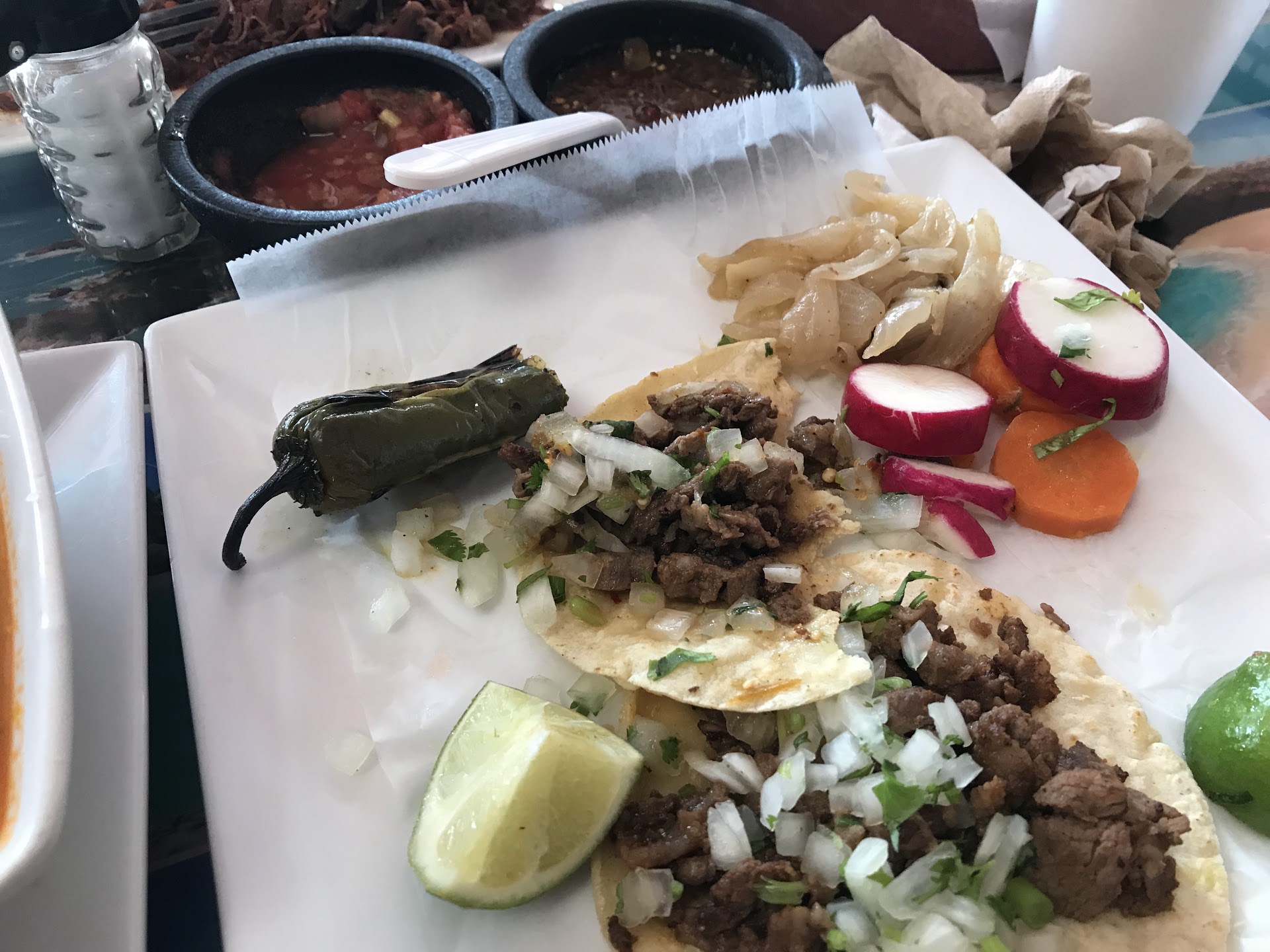 Ordered the 3 tacos plate and asked server if I could choose the meat. She said yes so I gave her 3 meats for the three tacos. Plate came with 6 tacos on it so I asked her when I received it about it in Spanish. I said the meal 3 tacos but my plate came with 6. She smiled and said it's the 3 tacos dish. Looking at the picture of the 3 tacos dish I saw it seemed to have more than 3 in the picture, so after she said that's what I got and looking at the picture, I thought it's what I got. Nope. Bill came and charged 3 tacos plate plus another 3 tacos. I asked her about it and then she changed saying it's 3 tacos plate plus another 3 tacos. I reminded her I asked about it on 2 separate occasions. She got manager who was awful and wanted to do NOTHING to assist but be super rude. Finally, manager took back the 1 taco I had in a to go package (to throw in trash), redid the bills so that I got charged the 3 tacos plate and said she'd make the server pay for the other 2 (of the 3 extra minus the one I gave her back uneaten). Ridiculous. Poor...