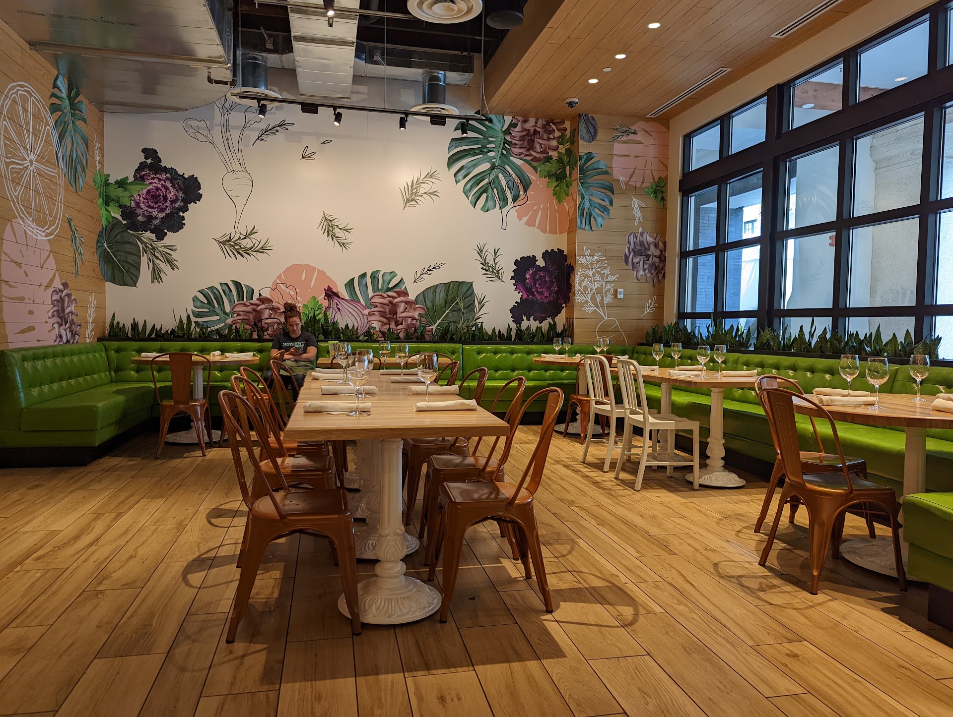 The ambiance in this restaurant is so nice. Very nice visuals inside and out. A great place for brunch, lunch or dinner. So I had a reservation for 10:30. We arrived at 10:15. The door was open and we walked to the reception stand to be seated. Long story short, after 5 mins of standing there and waiting to be sat. Lexi(who ended up being our waitress) saw us, made eye contact and continued food prepping or something in the kitchen, then proceeded to get dressed in her work uniform while we stood there watching her dress herself in the kitchen, all while not being sat or greeted. About 2 mins later Sam, unsure her position comes over and says "I'm sorry, we aren't open". I said, it would have been nice for someone to say that. There was another employee sitting at a table- she looked at us as well and did not say anything prior to Sam approaching us. Instantly- this is not the pleasant experience we were anticipating within the first 7 mins of being there.