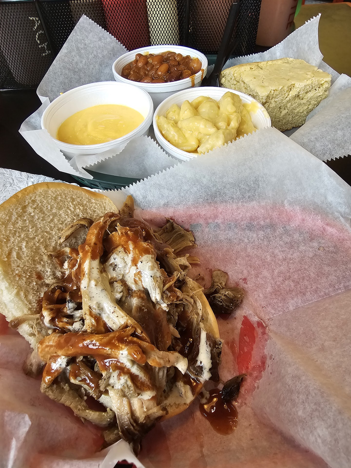 The table was also filled with a variety of barbecue sauces, including peach, Alabama white (mayonnaise and horseradish) chipotle, the B3Q signature sauce, and many a few others, which I experimented with as I ate my meal.