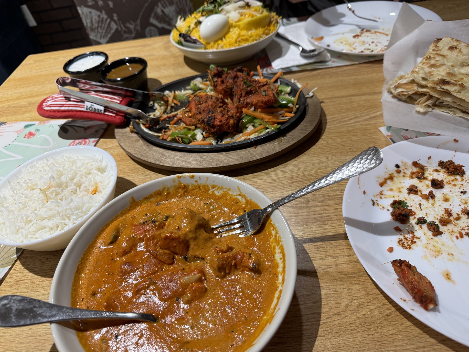 Edit for second dining experience: Portion sizes were smaller, tikka masala sauce was a bit oily, and they informed us well after placing our order that the naan âmachineâ was broken and they would substitute another Indian bread in its place. They brought a basket of Paratha instead that was obviously the frozen premade kind and was so oily we couldnât eat much of it. We were still charged for naan. Additionally, we were only given one single bowl of rice to share between two entree orders and when the rice ran out we were not offered any more.