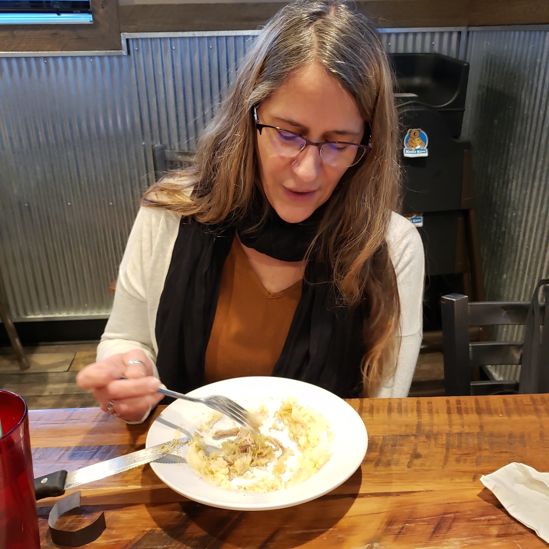 Two of our party had the "new" Grilled Tex-Mex Turkey Wrap. All ingredients (aka stuff), except the turkey, was spread on the tortilla; the turkey was laid on top and the tortilla rolled. My companion thought it would be better to layer the tortilla with "stuff", add 1/2 turkey, add more "stuff", add more turkey and then roll. She felt she'd get a bit of everything in every bite this way. It might even improve the plate presentation. As presented she didn't think the Tex-Mex flavor came through as she hoped, but there were no left-overs.