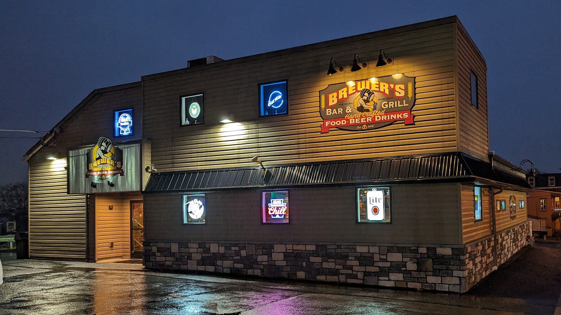 My wife and I were looking for a place to eat on New Year's Day. We searched Google and Brewer's Bar & Grill popped up and was open. So we decided to give it a shot. The interior was very clean and inviting. You seat yourself, so we grabbed a table in the dining area and were quickly greeted by our server. She asked if we knew what we wanted to drink and began to look at the drink menu and were overwhelmed by the number of beers on their list. Now, we're not beer drinkers, but it's impressive!! We eventually found a mixed drink and a wine that we ordered. Mine was the Mango Peach Paradise drink and it was delicious! A little sweet, but I like sweet. We ordered two appetizers. The Moon Pierogies and thre Brisket Burnt Ends. Both were brought out quickly and they looked good. My wife ordered the pierogies and I wanted the brisket. The Moon Pierogies were covered with onions and there Moon sauce,which we didn't know what it was, didn't ask and didn't see it's description on the left hand side of the menu....it was hot! It kind of reminded me of buffalo wing sauce. My wife wasn't prepared for the spiciness of the sauce! She took smaller bites after that! But she thoroughly enjoyed them and ate almost all of them by herself. The burnt ends were tasty and their Kansas City Bbq sauce was delicious. We decided, for our entries, on their Pork and Sauerkraut for my wife and I ordered the delmonico steak with a crabcake. My wife, normally, doesn't eat all of her meals. I was expecting that she wasn't going to eat all of this pork and sauerkraut, which was piled on top of mashed potatoes and towering over the brim of the bowl because she had eaten almost all of the pierogies. Well, she enjoyed it so much she ate all but a few bites at the bottom of the bowl! My delmonico was delicious as well. Perfectly done, juicy and just thre right amount of marbling. There crab cake was good, but just a little dry and bland. But when paired with the steak, it complimented it nicely! Overall we were both very pleased with our meals, the friendliness and attentiveness of the staff and our decision! Im sure a beer connoisseur would love their...