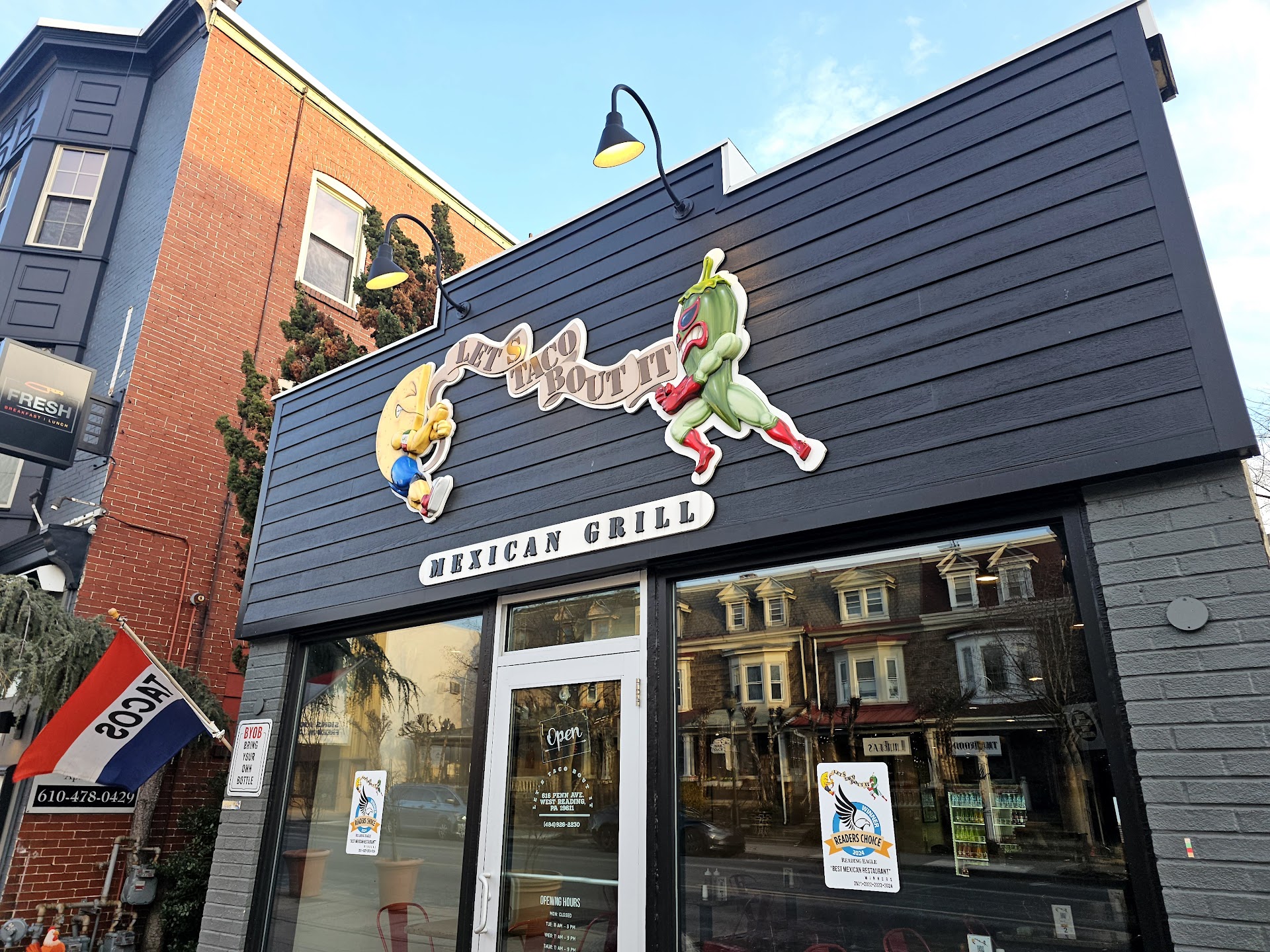 Read moreI thought the name of this place was a cute play on words, so it immediately caught my attention as I drove though West Reading, Pennsylvania looking for a place to eat with my family. The inside of this Mexican grill pays homage to old "luchador" films from way back when with framed original posters hanging on the walls of the restaurant. Besides tacos, this place also has burritos, fresh guacamole, tortilla chips, and other options. There are a large assortment of Jarritos Mexican beverages in their refrigerator. I ordered a chicken burrito. It was flavorful, fresh, and tasted like it was made from authentic ingredients. The soft tacos were also tasty and authentic. Each of our food dishes were served with small containers of green sauce and red sauce. The red sauce was spicy and the green sauce was on the mild side. Overall, my family and I enjoyed their food. Half of us thought that this place had tastier dishes...