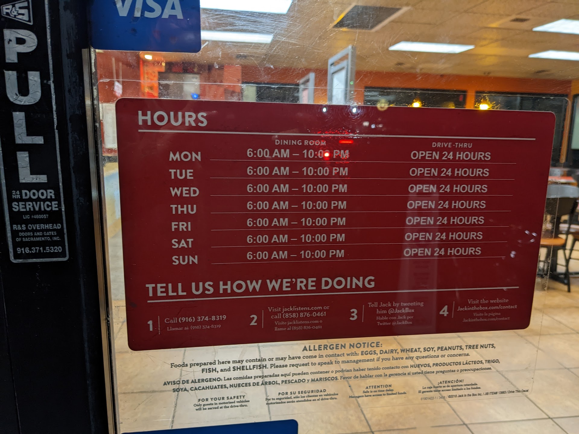 Read moreThis is not only a problem with this location but a recurring problem at Jack In the Box in general that I most recently encountered here. They have large signs that say dinning room now open and posted hours are that the dinning room is open until 10pm and yet we arrived before 9:30 pm and were signalled by staff that we had to use the drive thru.