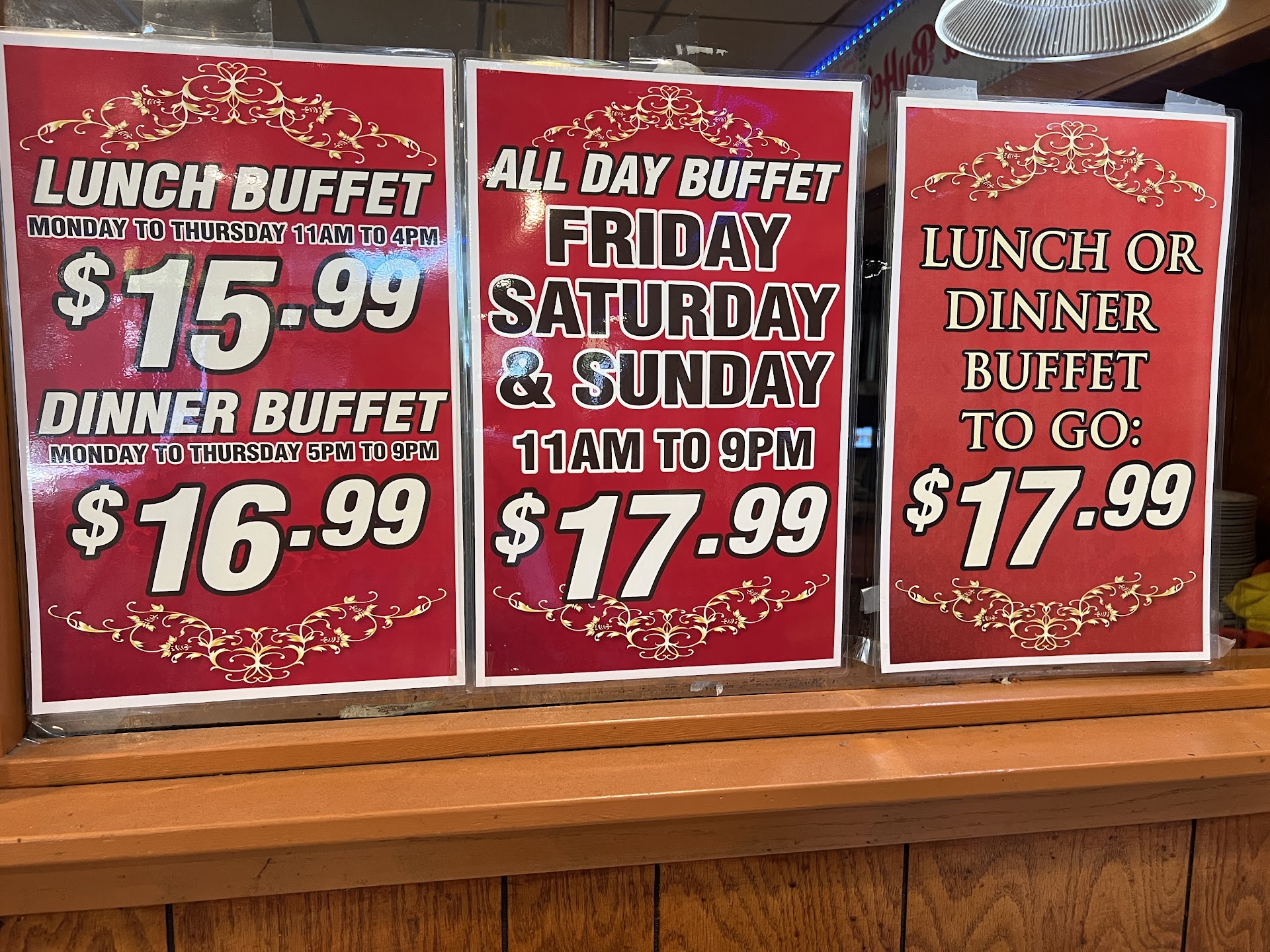Furthermore, the pricing for buffet lunch versus buffet dinner was a mere ONE dollar difference.