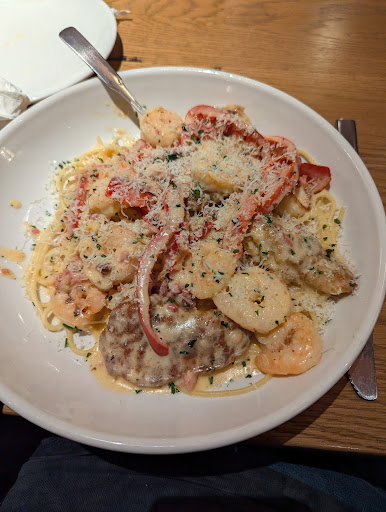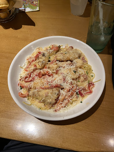 Read moreMy friend and I went to dinner at this Olive Garden location at around 9 pm. We were sat quickly only for an old man to be sat next to us a few minutes later. Apparently he sits at the same spot every time he goes. The tables were very close and he began talking to us. Asking us personal questions like how old we are and where we work. He was also making fun of a customer and one of the waitresses. It took a little while for anyone to notice we were uncomfortable. Two very nice waitresses came over and began to take our orders separately. He then insisted that he should pay for our meals and we should move the tables together so that we can all eat together. In this moment one of the waitresses passed us a note that said "he comes here all the time don't". so we politely declined his offer. He began to get hostile at us and the waitresses as they reiterated that we were not interested and he continued to try and get the tables moved together. Soon the manager came over asking what the problem was and the waitresses calmly explained the situation. She again reiterated we were not interested and he became angry and told her to stop speaking for us. Asking us "you don't wanna keep an old man happy". We were then moved away from him. The waitress that passed us the note came and sat next to us explaining that he's done this on multiple occasions but for whatever reason they won't ban him and stop this from happening to other young girls. Which makes me wonder why after all these times young women are still being sat at the table next to it, and why they let us sit with him, clearly knowing what would happen. I am grateful for those waitresses because who knows how far it would have went if they didn't help us get out of the situation. If you are a young woman avoid this Olive Garden and if you do go, be cautious that there is a chance this could happen to you. They are clearly not pushing for...