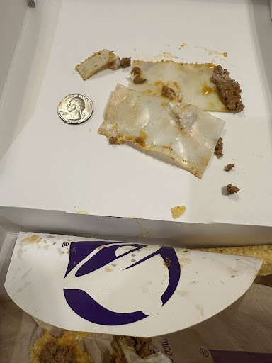 This Taco Bell has hit bottom. I've gotten accustomed with my orders missing toppings, heck I even expect it now.