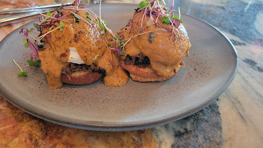 The main meal was a Masa Eggs Benedict. They use a modified hollandaise sauce, making it mole style, which adds a hint of bitter chocolate taste and richness to the sauce. Eggs were perfect, being just nice and gooey and oozing over the restaurant made masa cornbread. They use the same masa flour in their tortillas as well. Sliced up short rib was the main protein under the eggs, quite delicious when mixed with said eggs.