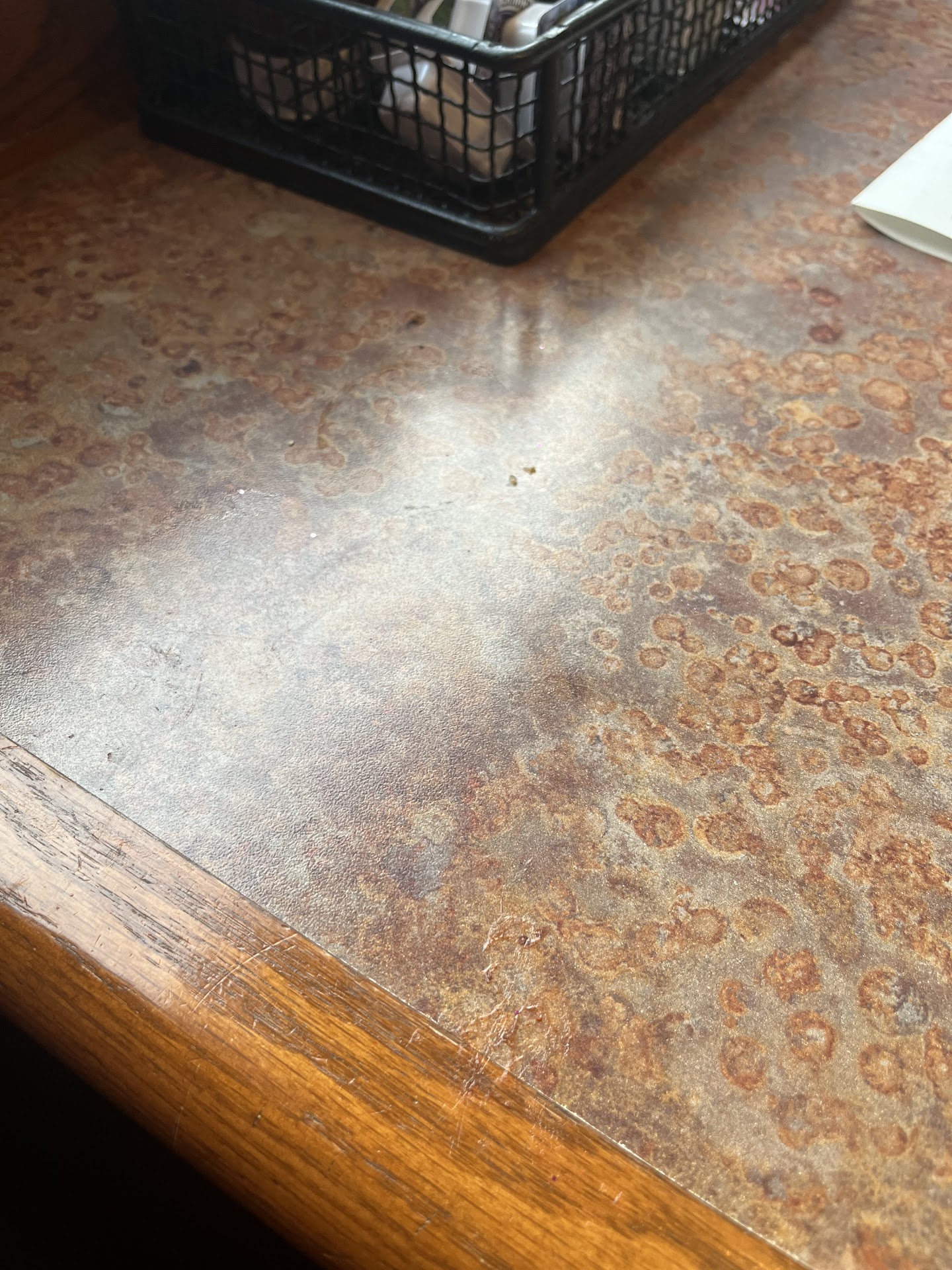 The table we sat at was dirty (Coffee spills, hot sauce and egg on the table), the floor below was also dirty. My husband asked the waitress if we could get something to wipe the table, she handed us a washcloth and we wiped it ourselves.