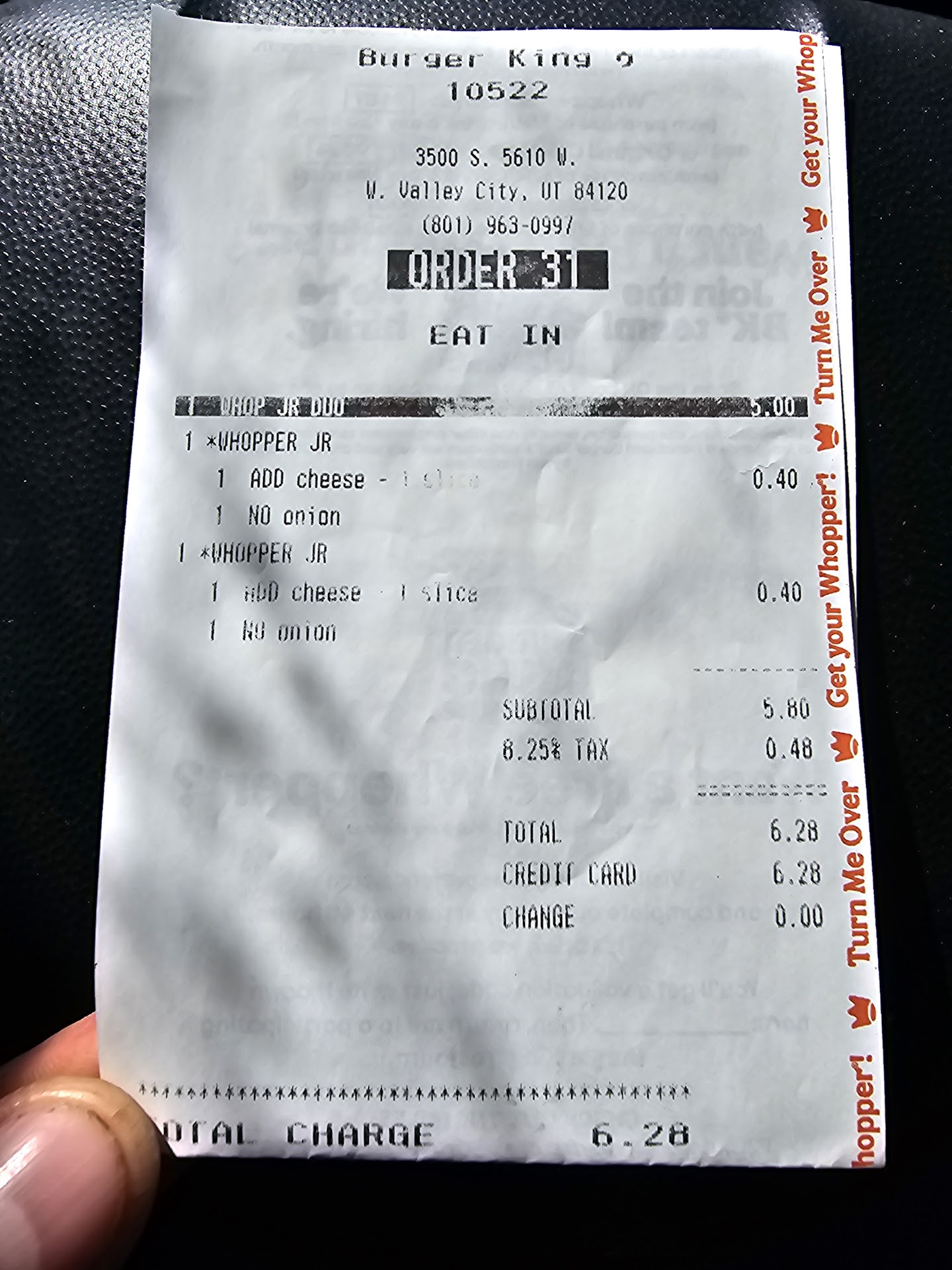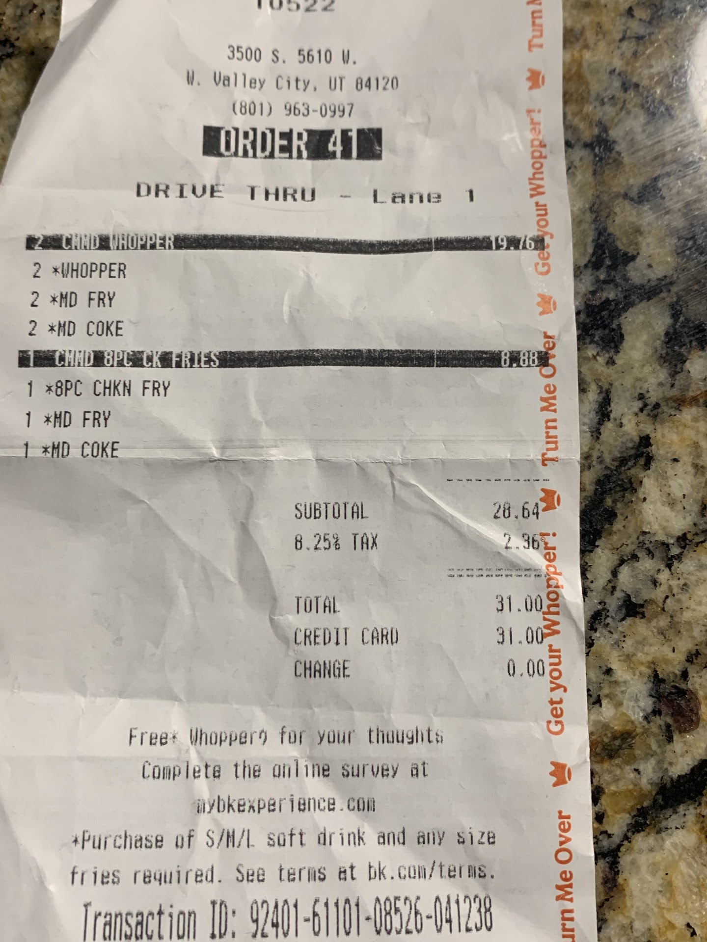 Read moreSo I go to this location because it is close to my house, and I do get that I'm not paying a lot for the breakfast sandwiches that we get, however when they don't put how long the sandwich has been sitting there, it tastes like it's been there for 30 minutes or longer at that point I'm paying too much. When I ask for fresh, I expect just that fresh. If I have to sit in the drive thru an extra five minutes even at the end of the day it was worth it. I don't want to be told it's fresh we only sell fresh! Then when I asked for sausage and the screen even says sausage, why do I not only get not fresh, but I get bacon! I have had numerous wrong orders here, my sandwich is messed up if I get the original chicken sandwich and I asked for cheese bacon and tomatoes, I just paid an additional $2 for those condiments, and the only is it not fresh squished and I don't have what I bought. Then when you attempt to call to complain so they can do better the next time, it rings and rings and rings and then goes to a fax machine. Then they asked two days later when somebody finally answer the phone, well do you have your receipt, hey I never got a receipt, and I threw the bag away obviously I am not going to let food set for two days while I wait for somebody to answer the phone. They need to step it up, there is way too much competition around to be getting everything wrong every time! If I ask for a Whopper with cheese no sauce no mayonnaise no ketchup, and I asked for a Whopper with cheese, please put sauce on one and not sauce on the other. Instead I get both with no sauce? Not fresh and squished! Maybe at this point I stopped calling the store and I will start calling corporate I know that I will not be returning anytime soon which is a shame because I really do like the options I have what...