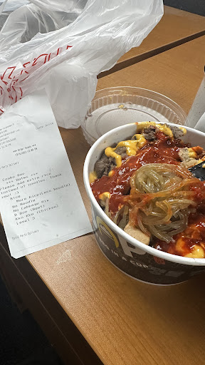 I can't believe I even have to write this because I usually love this place! My boyfriend and I are regulars at this location, but today, when we came in, the cashier lied to our faces! My boyfriend ordered us both our cupbop bowls as a combo with 5 extra mandoo each as well as a side of kimchi. He had also asked if we could get a k-dog as he really wanted to try it. The cashier said they were currently out as they had a lot of online orders earlier, and we were perfectly okay with that! We know it happens sometimes, and we went on with our time, got our order, and left. Halfway home, we realized they forgot our mandoo and we had to go back because we don't live far, and we paid for the combo so of course we wanted what we paid for. As soon as we walked in the girl who checked out our order gave us looks and sat down for her break / lunch, AND SHE WAS EATING A K-DOG!!! I actually can't believe she would blatantly lie to our faces like that. I asked my boyfriend for his card and thought maybe they just grabbed more from the freezer and went to the register to order one for him while we waited for our mandoo. Now, this worker told me they were out as well. Then when I asked how her coworker was eating one right now if they were out the 20 mins before she started stuttering and looked at yet another worker for help. He said we have a few left in Spanish, she looked me dead in the face and said well we just ran out. I'm so disappointed and disheartened that they would lie like this to...