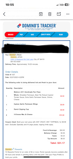 maybe itās because Iāve ordered usually later at night but Iāve ordered around dinner time With no problem she has shared with me that she has been really frustrated and actually has not bought from this location for a very long time Sheās ordered pizzas I guess for her job for lunch but whenever but it was late delivery to go to her work and she said it was just your delivery whoeverās were not on time, the orders are wrong ...so it was late and it was for a company lunchtime Itās a business , so Iām sure anyone esp this Dominoās can appreciate a business ordering So itās why I am having a hard time seeing that with this location but any Dominoās and I know thereās mistakes and things can run behind esp just when super busy like weekends Or holidays or just when everyone wants a great pizza But hopefully everyone else gets what I have service and food wise from this location and ever Dominoās Thanks Dominos Long time customer since the...