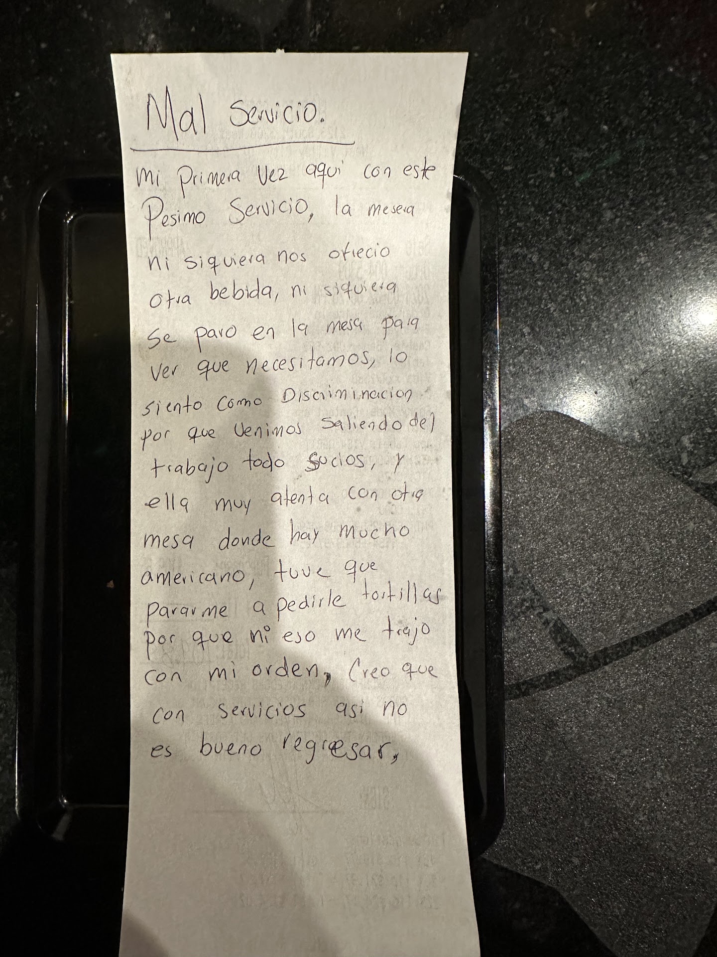 Read moreLet me start by saying, i called ahead to see if a reservation was needed for a party of 8 and a highchair for Monday evening, for my mothers birthday. The first thing the lady on the phone said we close at 8, so make sure you are out by then. That should have been the first red flag, but i continued with the reservation. Fast forward to monday night arrivals. I made sure to ask everyone in out party how their food was. Everyone responded with decent or good. Which i was glad, but i felt so bad and infuriated about everything else. We were trying to have a good night, but apparently the staff here doesnt care. We waited for refills, which were never filled or we had to ask several times ourselves until someone got refills. Not to mention, to our knowledge chips and salsa were on the house. But not tonight, when i got up to pay she had charged me 3 times for chips. The waitress should have said something. Im not cheap by no means its just chips and salsa but it would be good to know. When i went to pay, I didnt get a receipt until after i paid, so i don't really know what we got charged with, but how much could it be. As she tells me the total im low-key baffled. Considering there was 2 children and my mom and her friend shared a plate cuz too many chips were consumed, im shocked it was that high. As we exit i look at the receipt that was given to me after paying and noticed a 20% gratuity already added. Cashier failed to mention. No wonder she laughed at me when i said ill leave the tip on the table, she knew the waitress would be getting two tips without my knowing. Service was terrible, food was decent to say the least, lets not even mention the appetizer that came after we were almost done eating our entrees. Pathetic service, terrible staff, not recommending to anyone. Maybe one day they can get their staff in check, but as is, don't waste your time nor your...