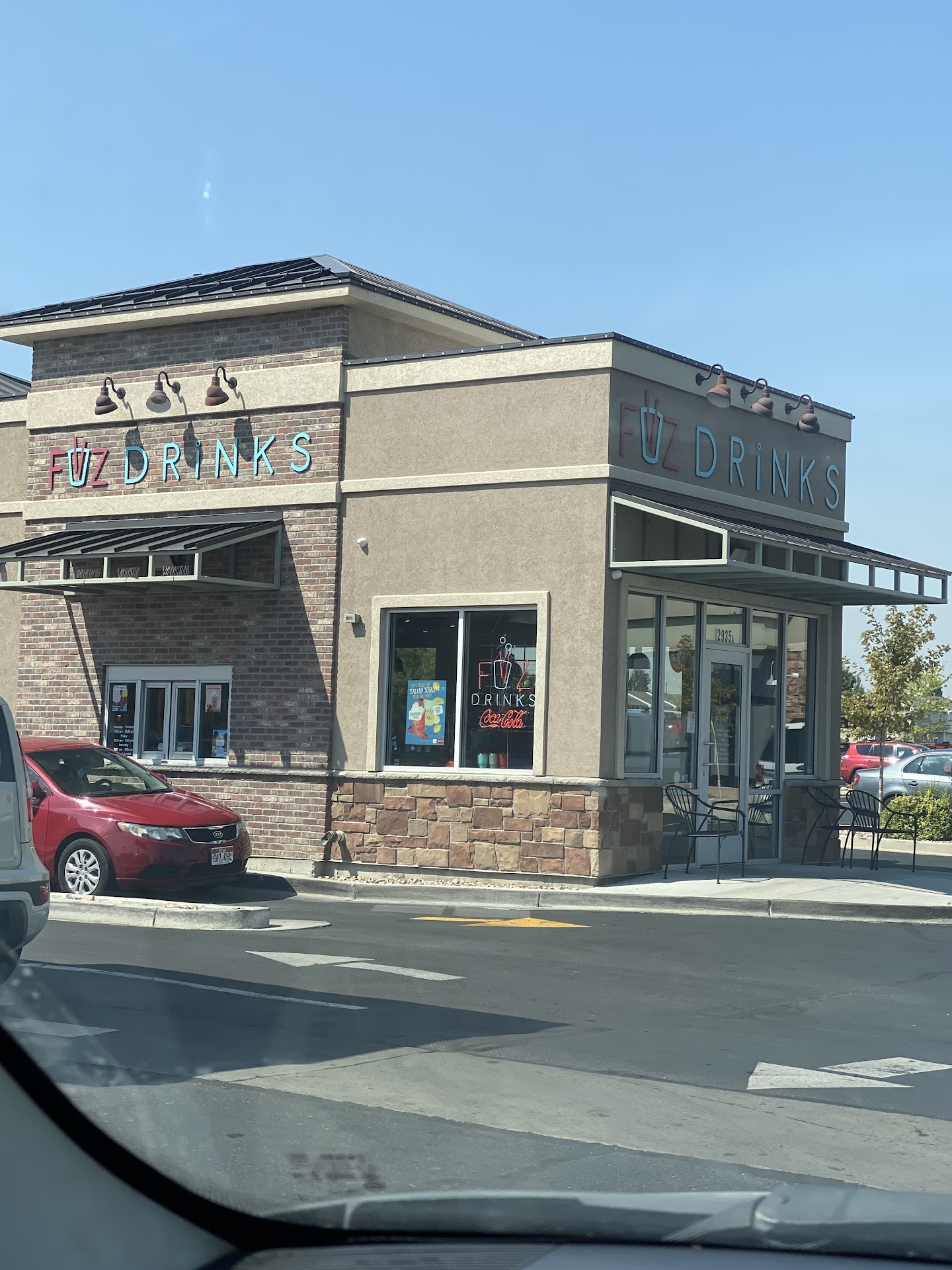 Came in tonight at 6:51, not crazy busy like most Fiiz on a double punch Wednesday. Speaker apparently wasnāt working because we said āhelloā multiple times after we ordered. It also kept clicking as if they were trying to speak to us. We pulled up and had to explain the aforementioned situation. They took our order at the window, which I understand is a bit of a pain but they told us our drinks would be out shortly. We ordered two of their special āCaptian jack SKELLINGTONā that was advertised on a whiteboard, a momojito and a sharks in the water, specifically asking for no ice and no sprite. We instead got Captian jack sparrows and when we began to explain the difference, a blonde gal proceeded to argue that we read the sign wrong and that the captain jack comes with Dr Pepper and that we can order with Coke Zero if we wanted. We explained that the drawn on sign said Coke Zero and had a different name, of which we ordered by said name. She popped an attitude the whole time. They also forgot to omit the sprite and ice from the sharks in the water. When we got our drinks the second time, the sharks in the water had ice in it, to which we asked again āthis isnāt supposed to have iceā. The person at the window, who we could see was a trainee was chill and understanding, but said blonde gal rolled her eyes and when he told her it was to be with no ice. She also worded what looked like āJesus Christā, though we didnāt hear it as the window had already closed. Oh and their solution? To pour out the ice of the sharks in the water and not fill the cup to its normal level. I wish I could leave zero stars but since they were willing to take our order at the window and the trainee was kind throughout the interaction, I feel itās deserving of one star. Needless to say Iām avoiding this Fiiz in the future. Youāre better off heading down to the Fiiz by Smiths...