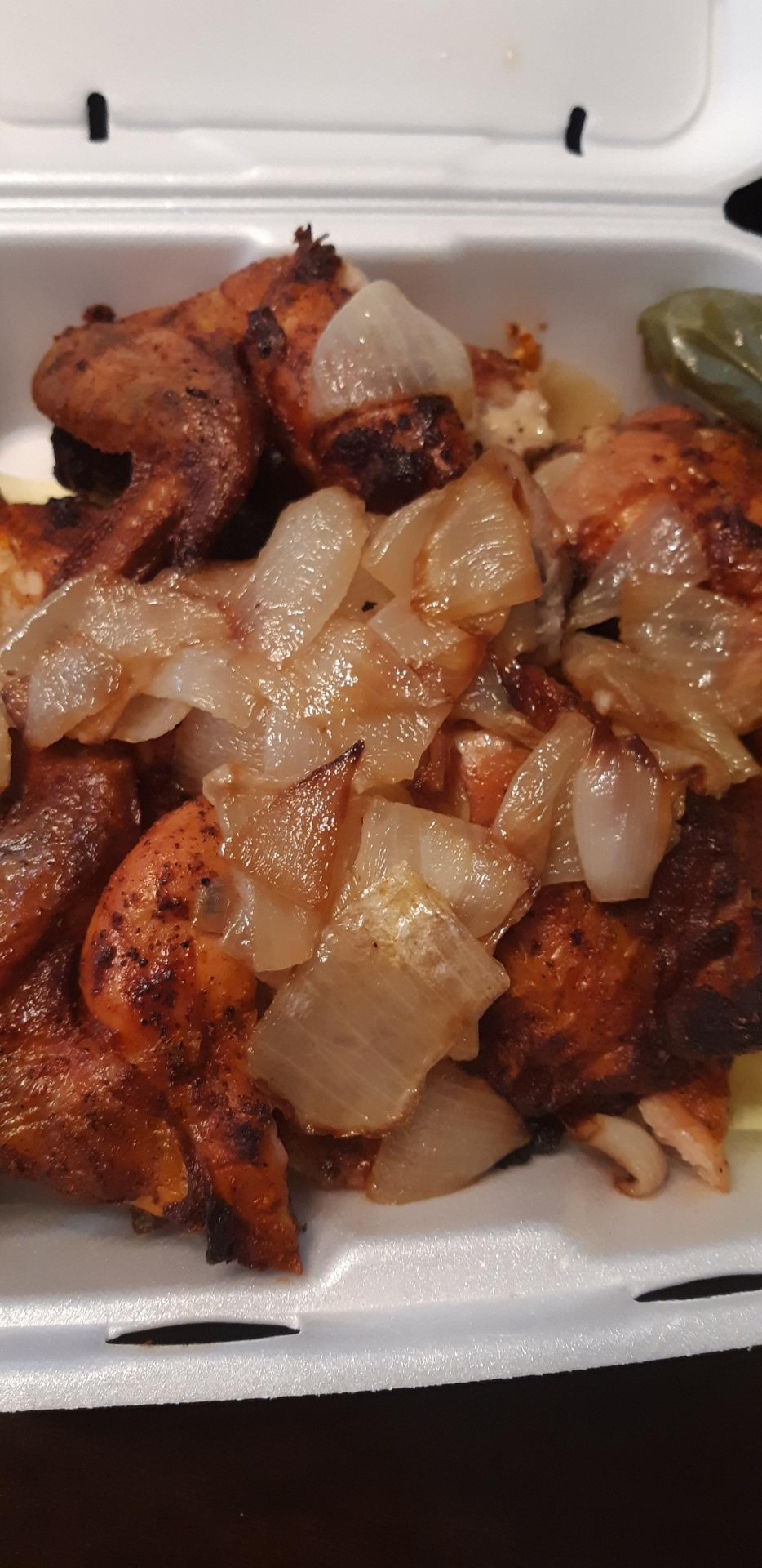 The chicken came with a bunch of grilled onions on top, along with a grilled jalapeno which my partner was not fond of as he hates onions. Next time will say onions on the side.