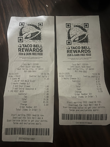 Terrible customer service, went and ordered food from here last night had to split the transaction between two cards, got home thinking how was that so expensive and I look at the receipt he charged me for extra food I didn't order and then this morning when I checked my card taco bell had extremely over charged me and the receipt didn't even make sense it said he charged each of my cards half and then took a few dollars cash so I went to talk to the manager about why they almost double charged me for my food, and he was so rude and disrespectful I got to the counter and he was telling me we don't split transactions between cards, and I was like you did look at my receipt and I can check my card history right now and show you and he said look lady I'll tell you one more time we don't do it as I'm just begging him to look at the receipt he won't even look at it, and he told me to get out of the store. Worst experience iive ever had and so unprofessional, and on top of it when he told me to get out he swore at me. That's really sad to have such poor people skills. So thanks for stealing money from me a week before Christmas taco bell, and I can't find a corporate number anywhere online. #badmanagment...