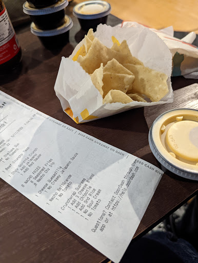 Read moreI have given this location multiple chances but after tonight I don’t think I will ever go back. The night shift workers for this location are probably the rudest workers you will meet. You never have time to look at the menu before you get asked 10 times if you’re ready. You always feel extremely rushed by the nightshift window worker. He glares at you and tries to get sassy at points. The food made at night is never what you order. The burritos and tacos aren’t even wrapped in the paper. The food is falling out or it is soggy and gross. Tonight food and experience was my breaking point for this location. The nightshift window worker as soon as I pulled up to the order machine I was being asked if I was ready to order and I hadn’t even stopped my car yet. Within a matter of a minute sitting there deciding between 2 people what we wanted we got asked 5 times if we were ready. When the food came out the burritos were falling apart and burnt. We got a Mexican pizza as well that had nothing on it. For $25 it was most definitely not worth it and I want a refund. I don’t ever recommend this...