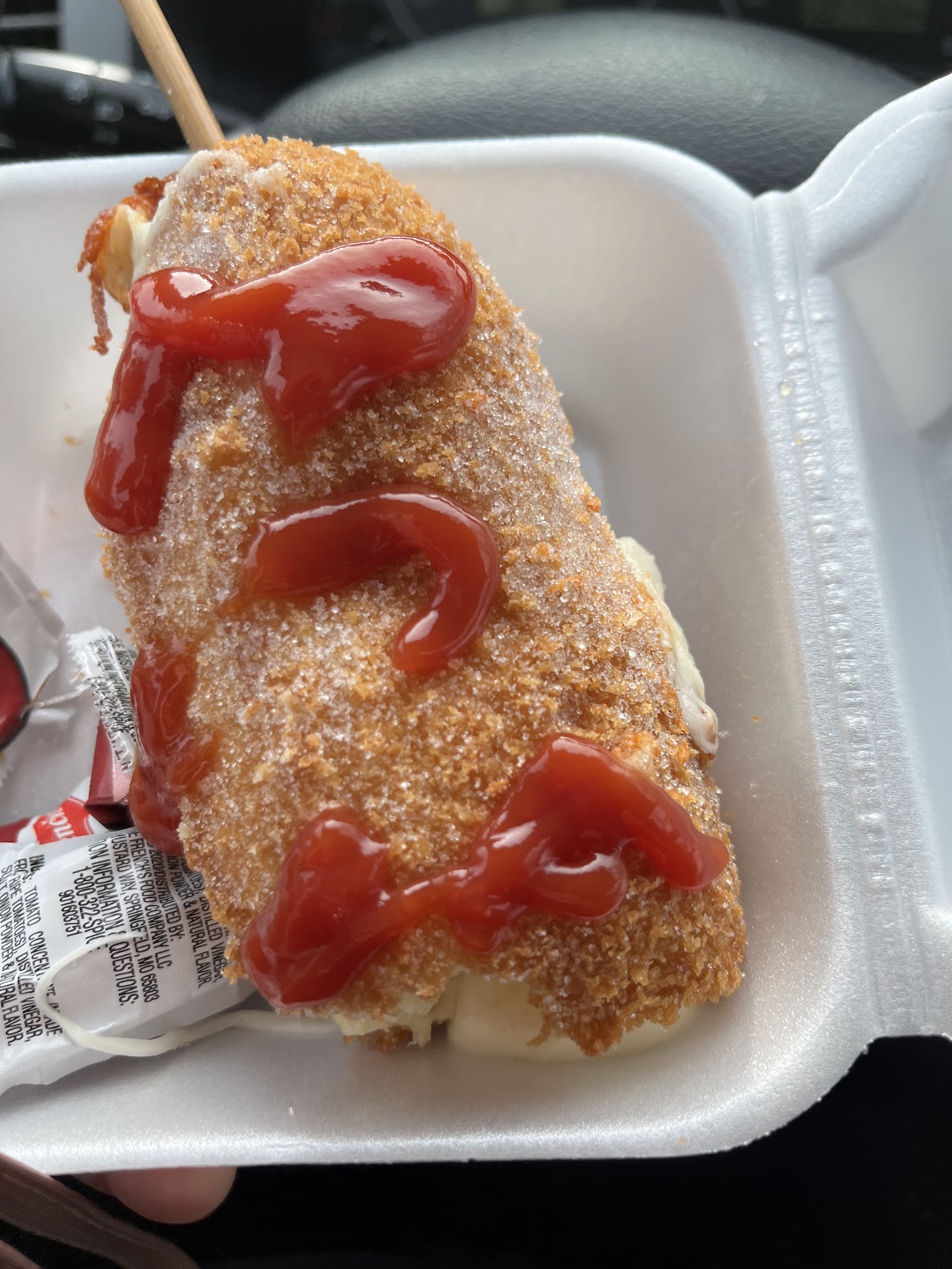 Got a half/half corndog, with potato batter. It was raw halfway through. Ended up microwaving it to cook the rest, and it turned out okay.