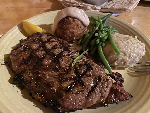 Read moreThis was my first time here and I will be back with friends! The blackened salmon and green beans were delicious. The crab dip was tasty as an appetizer and is better with the bread brought with your meal v the white bread served with the appetizer. The desserts are not made in house, but the strawberry cake was nice. They have a lot of wonderful seafood, steak and other meat options. The house made salad dressing was divine. Not much on the menu if you are a vegetarian. The service is the best! The waitress was genuinely friendly, attentive and made great recommendations. Nice place after a long hike or day out enjoying the great outdoors. I appreciate the ability to have an excellent meal in a casual...