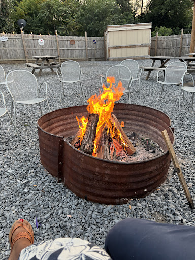 Pleasantly surprised by this place. The food was delicious I got the morning glory burger with fries and a small old bay wings order with ranch. My partner got the wet jerky and old bay with honey drizzle. All the wings were amazing and the burger was good tho I didn't finish it because it was so big. We also got the loaded sweet potato fries they were very sweet but a great combination. Every one was friendly and food was reasonably priced only spent about 75 bucks for a small order (6) wings a medium order (12) wings. A Red Bull and vodka, a Coke, a morning glory burger with fries and loaded sweet potato fries. The employees were wonderful they started a fire in the back area and put on the football game for us. The cook came out and spoke to us. The inside was loud because of the rock band but truly everyone was great. I'm docking a star simply because the outside and the way you enter are a little off putting and if it's your first time there it can be a little overwhelming...
