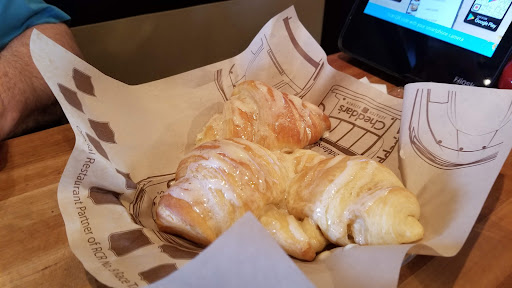 We sat down and ordered drinks, server was kind and got them for us. We ordered an app, which I watched her put in on the kiosk, so I knownit was ordered. She then took our food order. Food came out, app never did. I politely said, "hey, our app never came out. Can you just take that off the check?" No apology, no acknowledgement that this was a service error, nothing. In this moment we asked for crossaints. She agknowledged. She asked if I wanted another drink, I said yes. 15 minutes later, she said, "did you ask for another drink?" (By this time i was done eating and still waiting on our crossaints also 15-20minutes) I said, "i did, but i dont want it anymore"...no apology, nothing. We asked for boxes and i asked if she could make the crossaints to go, since we were done eating. She stated they are free, you just have to ask for them... (I did, 20 minutes ago). We explained we had a gift card and she took the code. She then laid a bill infront of me and showed where the app was taken off. I asked if there was an issue with the gift card, as it was still showing the same amount... she said "I didn't take it off yet" in a tone that seemed irritated. I'm curious as to how I should have known that when she sat THIS bill in front of me. So, we waited for the actual bill and paid.