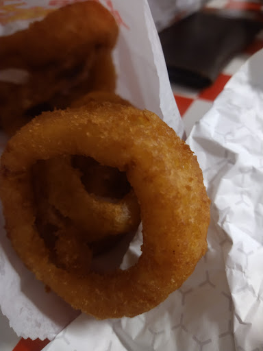 The burgers we got were so dry and tasteless we couldn't finish them. The onion rings were awesome because they were made to order. The outside dining area was perfect. Our server was overwhelmed but friendly.
