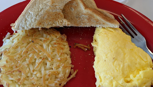 I had a cheese omelette, hash browns, and a biscuit with an appetizer of hush puppies. They only had sliced sandwich cheese for the omelette, making its filling not great. Hash browns were a-okay! Biscuit could afford to be less greasy. The hush puppies were delightful, maybe just ever so slightly underdone. The coconut cake was excellent!