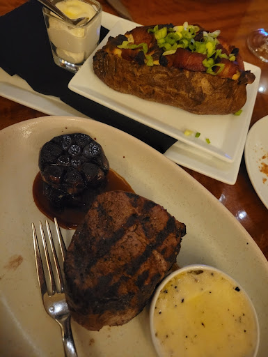 Aside from our meals being delicious and cooked to perfection (I had the filet mignon with garlic truffle butter + loaded boursin baked potato, pictured here!) our overall dining experience was fantastic in large part to our server, Morgan. It has been a LONG time since I have had such a high level of service at a restaurant! Not only was she extremely knowledgeable about everything on the menu, she also made excellent drink recommendations, she was very attentive and accommodating to our table, and her kind and friendly personality was the icing on the cake! She is absolutely FABULOUS at what she does and she deserves a huge shout out for providing us with such outstanding service while we were out on a very rare "kidless date night" with our good friends - she made our night! Thank you again for giving us an A+++ experience all around last weekend, Morgan!👏🏽