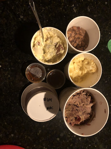 Next...the sides. The Mac and Cheese is out of this world delicious. I would likely have given this place a 4 star review if I’d been able to order 3 sides of Man and Cheese. But I couldn’t. I tried to call in my order but nobody answered the phone, and the online order form did not let me order multiples of the Mac and Cheese. So I improvised. I got bean soup, which was OK but didn’t travel very well (I guess it’s better hot), and potato salad, which had too much mayonnaise. I wish they had a more diverse selection if they didn’t allow multiples of the same side.