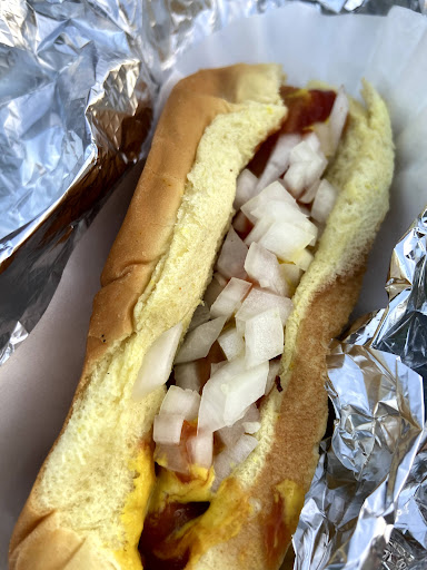 The Hot Dogs were okay, steamed buns a plus, weiner was okay, chili aka sauce was okay, slaw sweet needed to be a bit drier too wet, and onions overly strong. But the big No No was it was wrapped in aluminum foil wrappers instead of wax paper or parchment paper,so the steamed buns stuck to the aluminum foil creating a even more messier dog!!! I hate that!!! I almost took them back, but I decided to just rate them on flavor and service. I liked the fact I could order outside. I liked the outside dining tables covered with umbrellas but needed a little cleanier, refined area. I felt like I was actually in parking lot and the tracker trailer rig for a wall made it worse. I would go back but i would tell them not to wrap in the foil, it really did...