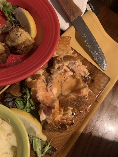 Waitress was a hard worker and did an amazing job. My Fiancé ordered Grilled Salmon Filet and was brought a steak. Due to covid guidelines nationally, no restaurant is supposed to take uneaten or wrong food to the kitchen. So the waitress apologized and put the correct order in. Steak was left on the table. My finance ate a few bites of it. The manager sent the waitress out to collect the steak on a saucer. The steak only. Not the potato or veggies. She should of took the whole plate since covid guidelines were already being violated. The manager directed her to do this. He was so worried that my fiancé would eat the steak even though it was NOT ordered, that he only took it off the plate. Common sense you take the whole plate because the potato and veggies would get cold. The manager then had the nerve to come out and look at my fiancé and state, looks like you worked on that steak. This really upset my fiancé. He was hungry due to sitting with me at the hospital all day from my surgery. He got his salmon and we just boxed our food because the manager kept being coy and arrogant. We left. I had not eaten food in several days and only had clear broth, due to the procedure I was having. I’m going to take this incident further. With the prices a consumer is charged, they should get the food they ordered and at least treated...