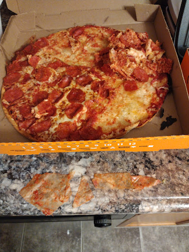 Read more8/30/24 I came to pick my 1 pizza up I waited in a 3 person line for about 10 minutes we can hear 2 ppl talking in the back and can see a lady eating her food so I went ahead and changed my son's diaper and came back. The line was gone I guess they got their food and all left. I waited another 15 minutes to see the lady shove food in her mouth and rush to the back before the 15 min wait started!!!! There are at least 2 workers there so I don't understand why nobody is at the front and when she came up, my food was pulled from the heater so it was done...