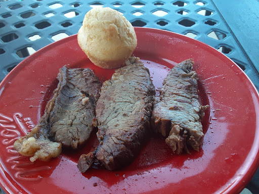 Our visit-- the 328th 'cue stop across 35 states-- proved largely disappointing. While the restaurant is open for lunch, it is drive-through only at the dinner hour. So, we ended up eating the Friday special-- a 4 meat/ 4 side platter-- at our hotel. There was a lot of food here for $24.93 plus tax, with a bag of pork rinds and an apple crisp bringing the bill up to $36.02. For the meats, we chose brisket, ribs, pulled pork and Italian sausage, and for the sides corn muffins, coleslaw, green beans, and mac 'n cheese. The pork rinds were great, but the heavily sauced ribs proved mushy and bland. The Italian sausage was unremarkable, but the pulled pork was a very tasty bite that we would order again without hesitation. The 4 sides and the apple crisp weren't bad, but there was nothing memorable about any of them. This leaves the brisket, which is the epicenter of the BBQ universe. This was sliced too thick, lacked a pink ring, bark and discernible seasoning, and whatever smokiness it might have once possessed vanished beneath a slathering of sauce. Texture and flavor profile alike called to mind buffet roast beef with sauce added. So, if you dine here, our recommendation is that you go with the pulled pork, and sides of coleslaw and...