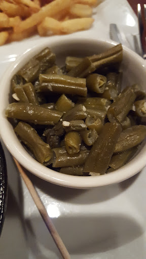 The food arrived & the salmon was way, way too overdone & DRY & the veggies were cold & only half cooked! Neither the salmon nor the veggies were anywhere close to being "fork tender"... in fact, it could barely be cut with a steak knife! Speaking of steak... I ordered a 6 oz. Sirloin cooked Medium. The first time, it arrived at our table, basically raw with blood oozing from it. Apparently, the chef only set it on a plate somewhere near the grill so it could see the fire. So that was sent back in hopes of some actual flame possibly touching the meat. Eventually, on the second trip to our table, my steak arrived with the outside slightly charred, but inside it was red & tough to cut, let alone chew. By this time, the other 3 people were nearly finished with their meals & our schedule was getting tight, so I ate as much as I could just so we could get to our next appointment on time. Later that evening, I fed the leftover, half raw steak to a couple of stray cats in the parking lot at our motel.