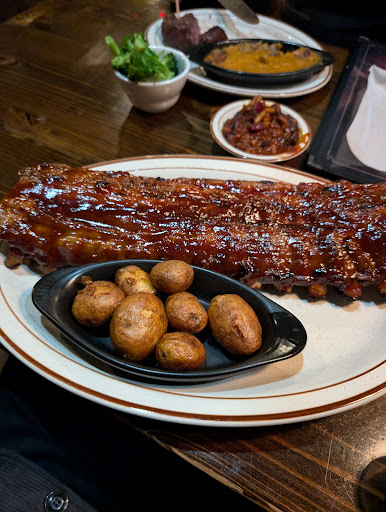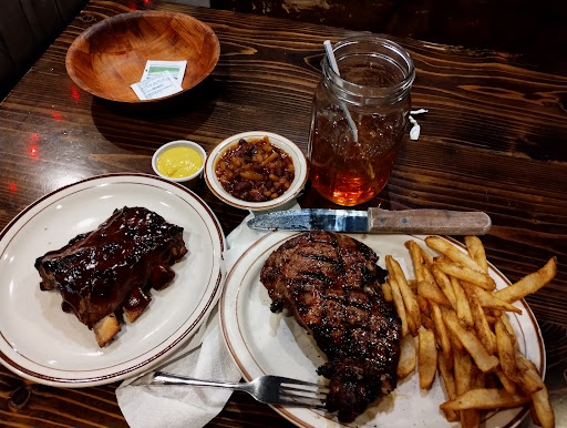 Read moreThis is the second time here. The first time was amazing, the second was not so great. I had the special which was ribeye and two sides and added the 4 bones (ribs for a few dollars extra). The ribs were very good like the first time, the 5 bean side was also great, and the sweet tea was delicious. The issue was the ribeye and fries and slightly the service. The ribeye was so tough I literally left half of it on the plate because my jaws hurt from trying to chew through the thing (ordered medium but was definitely well). The fries were cold, not even what I would call warm. The waitress was very sweet and did ask if I wanted something else but after it took so long to get my food I wasn't about that. The only real issue with the service was the ladies were too concerned with their cell phones to pay attention to their customers as far as refills go. She did check on me a few times with the food, especially when she saw me trying to chew through a piece of steak. They do definitely need to have rolls or peanuts or something while you wait for an eternity for your food. The manager or owner definitely does pick the appropriate look for the waitresses and hostesses. The name of the restaurant is fitting. The poor girls probably get harassed constantly. Will try again though because the first time was amazing and everywhere has bad days. With the exception of the restroom, which is interesting lol, the decor is very interesting and nice. Don't be jerks when you review places and remember people are humans and make mistakes and...