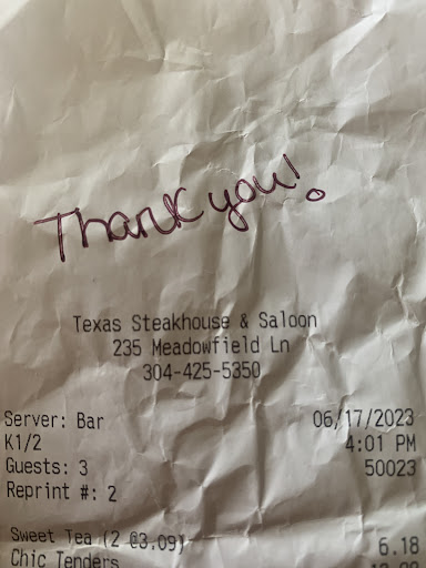 Read moreLet me begin by saying I didn’t walk into Texas Steakhouse expecting to have a spiritual awakening—but thanks to Tyler, server extraordinaire, I now consider myself a born-again carnivore.