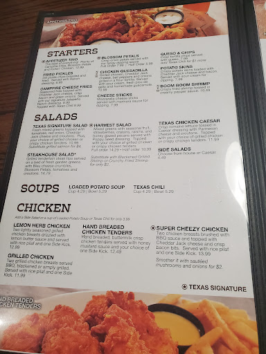 Read moreMy wife, my grandson and I stopped here Sunday August the 25th on the way home from the beach. Big mistake and I wish I would have checked the reviews before stopping. We arrived shortly after they opened and only a few other people was inside eating. The waitress came and took our drink order and we ordered the chips and queso she brought our drinks back and roughly 10 minutes later she came back to tell us they were out of chips, ok fine just give us the fried pickles, nope out of them also. I should have left then but my grandson was starving so we ordered the chilli cheese fries and we told her we’d go ahead and order our dinner as well. We all ordered steak my wife and I had the ribeye with baked potatoes and I had ceaser salad she had a side salad with ranch. First thing that comes out was our salads and mine looked awaful, it was brown and not good at all. Finally the fries came they wasn’t horrible but just ok but it took forever our steaks to come out. First of all my grandson couldn’t chew his steak bites because they were so tough then my wife’s steak, which was supposed to be a ribeye was 100% a ny strip. My grandson ate some of his mashed potatoes, my wife left most of her steak and I ate half of mine. My steak just just didn’t taste right. The service was ridiculously slow, we finally had to ask another waitress to get our check for us. And as we were leaving I looked at the rolls other people were eating and it looked nothing like what we was served. Ours was flat and one of them had salt on it and what was on the other people’s table was smaller and more round. Needless to say we will never be stopping here again to eat, granted I only pass by here two or three times a year but I would definitely advise others not to stop as well especially when there’s a Outback Steakhouse right...