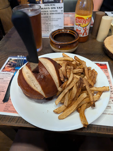 We tried a couple appetizers and a main course. - Their pretzels are amazing and the cheese had a bit of a kick to it that was great. _ The fried pickles are spears. They were good, but I miss the little bit of heat you usually find in fried pickles. They have malt vinegar at the table, which is good to see in a place that serve fish and chips (it always amazes me how many places here don't even have malt vinegar in their restaurant) I had fish and chips. The coleslaw was good, not too sweet. Fries needed salt, but fish was cooked well. My sister had a BLT. She is extremely picky, but she ate her sandwich without picking it apart. I know this doesn't seem like a big deal, but I can only think of one other time in 4 years where she didn't pick her sandwich apart to eat just the small bits she is ok with.