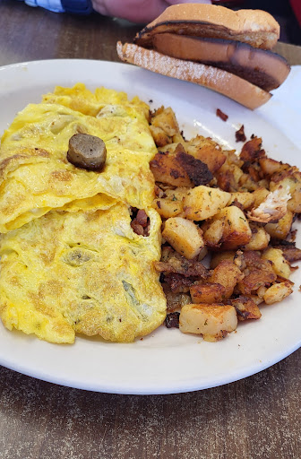 We stopped in on a Sunday morning in West Warwick expecting to wait in line. We waited all of maybe 4 mins! Our server was Rhi and she was attentive and pleasant! The food was delicious and we had huge portions. I had the Avocado Benedict which came with poached egg over a bed of spinach on a delicious biscuit (not soggy), sliced avocado, bacon, hollandaise sauce and a sprinkle of feta cheese and served with home fries perfectly cooked. The combination was unexpectedly awesome! My wife had the Meat Lovers omelet which was stuffed with sausage, bacon and ham served with homefries and toast. Both meals were a culinary delight!! The atmosphere was lively and fun decor perfectly suit for this type of restaurant. The staff were friendly and happy! Other customers appeared happy! The menu had lots to choose from and prices were reasonable for the amount of food served. We would highly recommend this establishment and plan on...