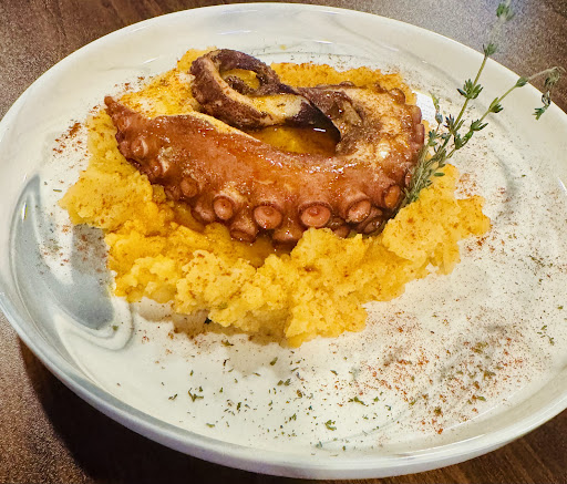 We found a cozy restaurant in Providence during a hockey tournament. The food was decent, but not great. My husband’s Pulpo a la Gallega was simple but satisfying. I had the Seafood Paella, but it lacked bold flavors. The ambiance was inviting, but they could improve it by upgrading the silverware and choosing more elegant napkins. These small changes will elevate the overall experience.