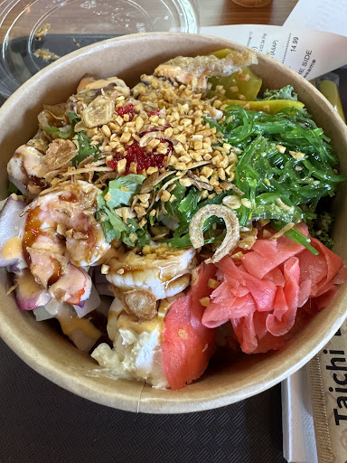 We both have had a fair amount of poke in the area and this is now by far our favorite. Every ingredient was SO fresh and flavorful, and the rice (I got brown rice with sesame) was cooked perfectly. I tend to lose my appetite before finishing bowls because sometimes rice can be a big glob and not very mixable, this was a pretty big bowl and I ate every last bit. The sauces we got on the side were all very good too. There was someabout the proportions of all the ingredients I customized that just worked really well and made for very good individual bites.