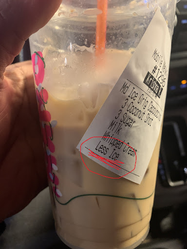Ā Ā Ā Read moreI've been to this Dunkin once, this review being written after the only time I have been there. On the evening on Dec 9, 2021, a simple order of an Iced Frappucino w/ Less Ice, Coconut, and Sugar with whipped cream. After looking at the picture below, you can see for yourself how horrible the service is here. I did not have any whipped cream, there wasn't any coconut in my drink, the "sugar" was all at the bottom of my drink, and even after selecting Less Ice, the entire cup was FULL of ice.