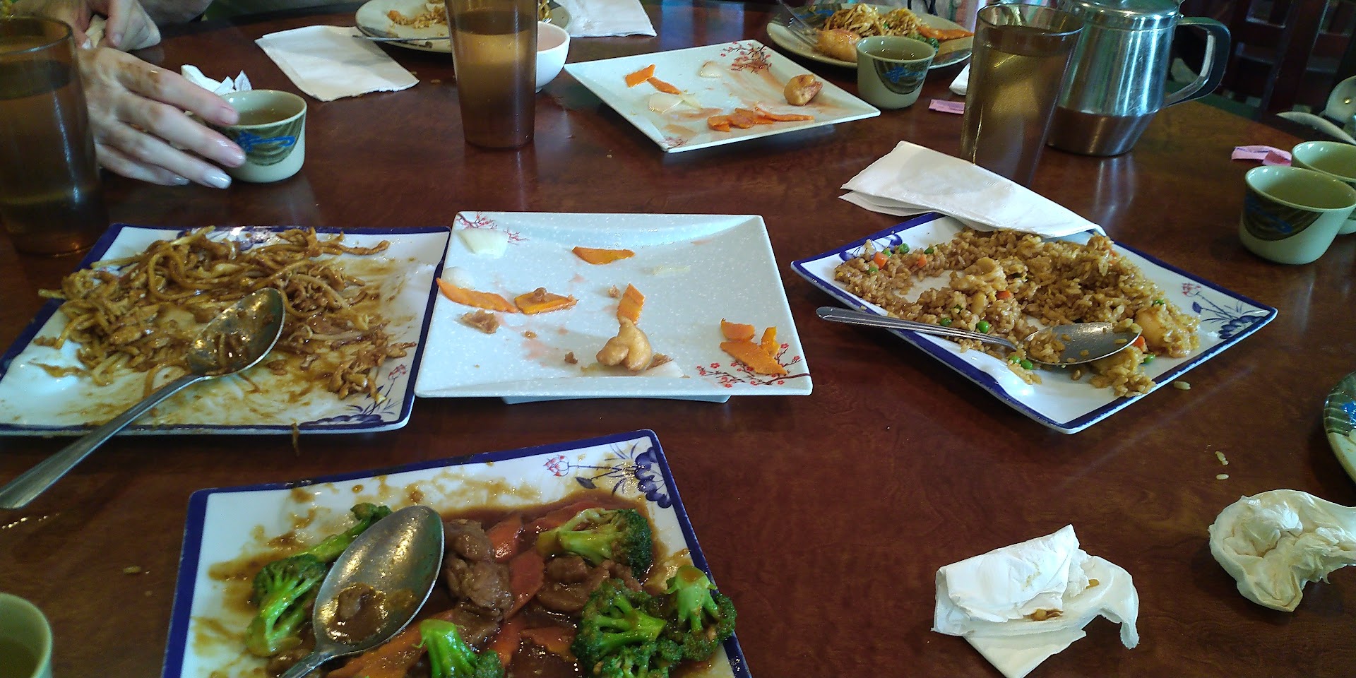 Anyway, when we sat down, there was chop sticks on the table, with bowls. Without even asking, a server just came over and slammed a plate and fork in front of us both and walked off (ok, so we can't use chopsticks but that's besides the point). They just saw we were Caucasian and assumed, they were racially discriminating against us as the Chinese people sat with us were not 'dumped' with a plate and fork. It was like we were an inconvenience. We were not offered a drink at any point. We asked what was in the food (allergy reasons) and was just ignored. Directly behind our seats, and I mean, directly, there were piles of dirty bowls and plates, lovely.