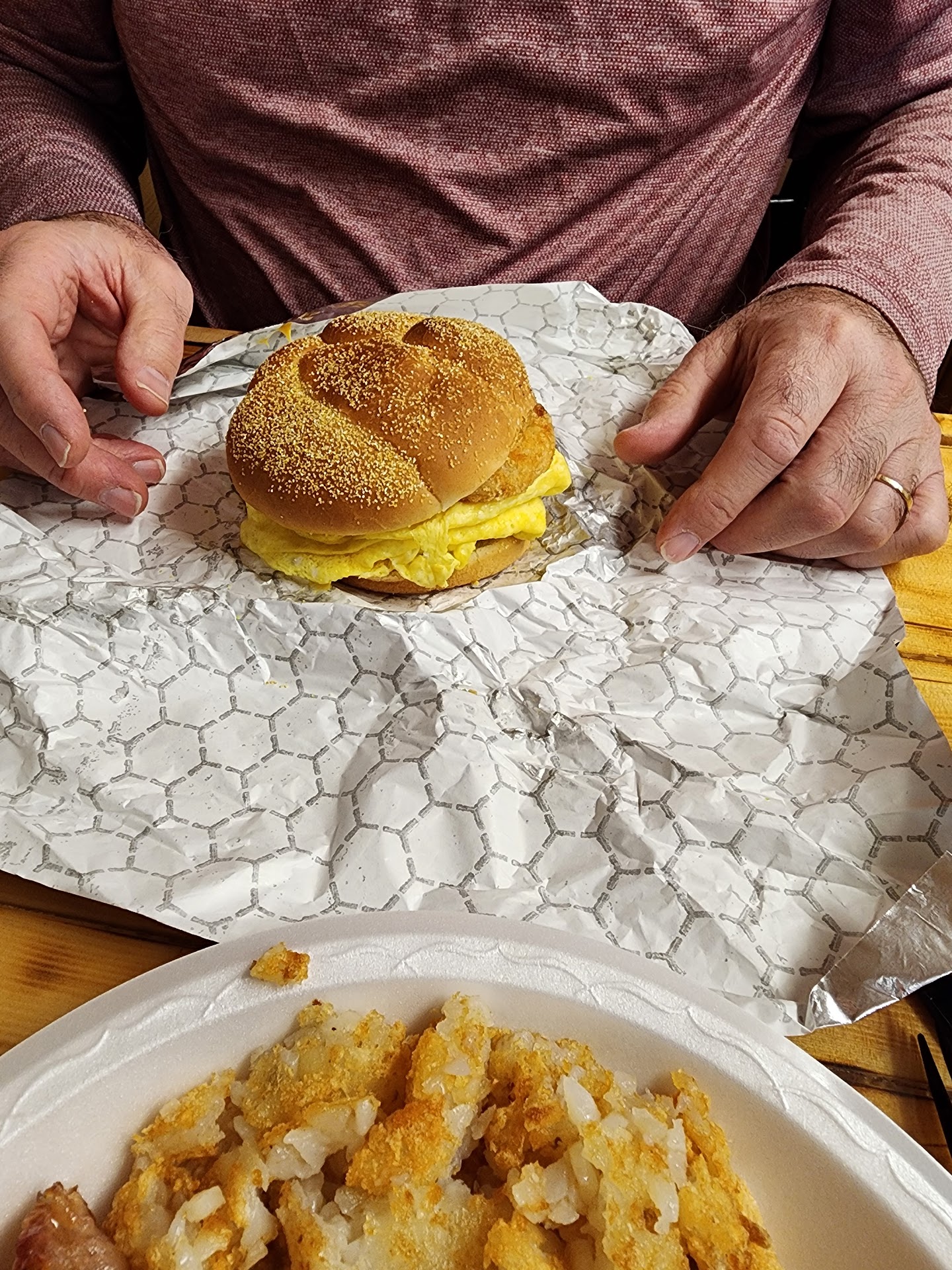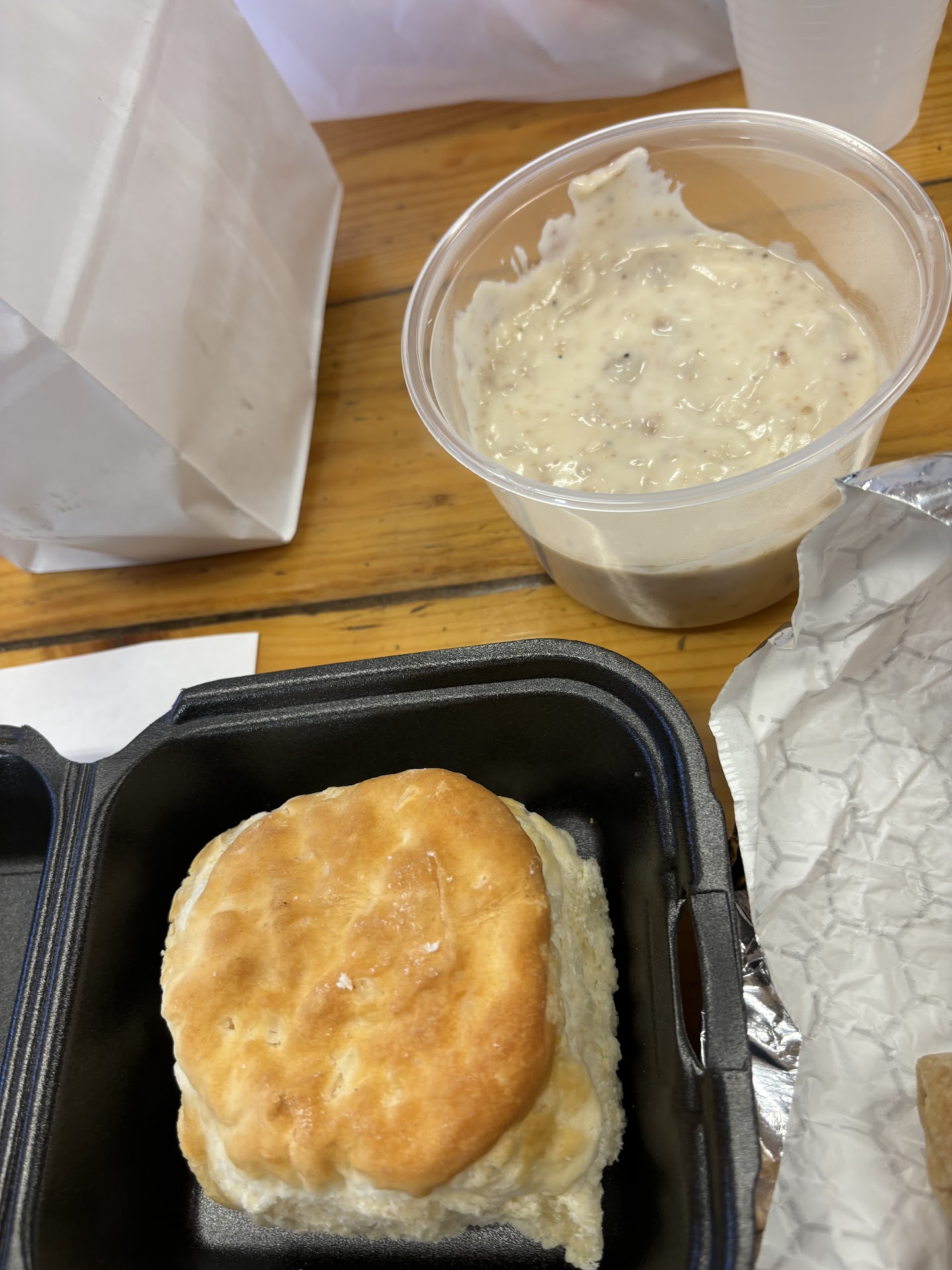 Read moreThe ultimate breakfast sandwich is sooo good! The breakfast burrito was one of my favorites because it was cheesy gooey goodness. The iced chai was good. The raspberry donut had the filling in the ring which was unique and delicious. The box lunch is a great value for all you get. We got the sandwiches only the second day because we had leftover snacks from the day before. The only downfall during our visits was the biscuit. It was hard & cold. Other people said that in reviews but we wanted to see for ourselves. Get something else cuz everything else was delish. Just some info: The line at 8 am the first day was only 2 people. The second day we went earlier at 7:20am and the line was 20 people deep and it took us 30 min to order and 15 min to get our food which was fine with us. (They said they were short one staff member this day so they did apologize). Just know if you’re in a hurry, there may be a wait because everyone else likes the convenience of getting breakfast & lunch in one place. My small gripe is they charge a 3% credit card fee and I didn’t see a sign stating that or I would have used cash. The other restaurant we went to for dinner did this too, so maybe it’s a known thing in this tourist area, not sure. Either way, we will recommend this place to our friends who will visit the area. They also had a large variety of to go drinks and snacks for purchase. They have 2 bathrooms that are decorated so cute but one of the sinks barely...
